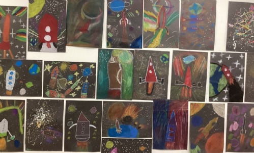 Science work is still all about space and we have been learning about why we have days and years. The children who did not go on the residential complete some fantastic artwork around space travel in the future.